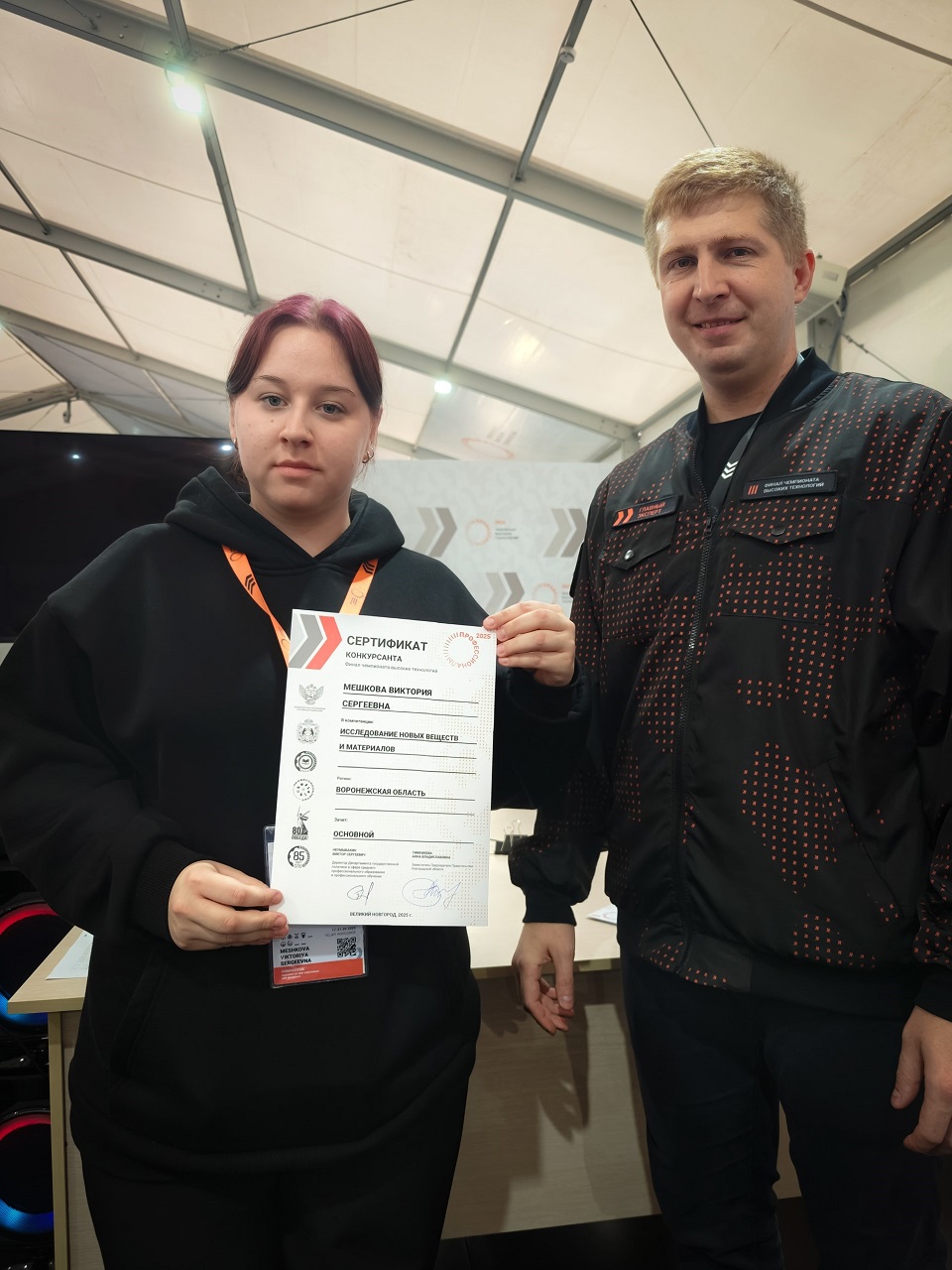 По окончании Чемпионата Высоких Технологий Виктория Мешкова получила сертификат конкурсанта, а Илья Воронцов сертификат эксперта-наставника.